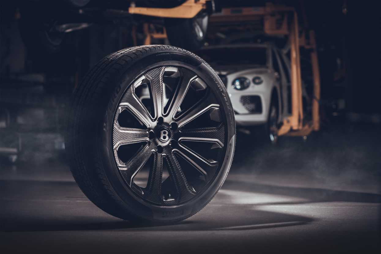 توجد خلف العجلات أقراص مكابح من كربيد السيليكون والكربون (CSiC). إنها أخف وزنًا بأكثر من 44 رطلاً من الفرامل القرصية الحديدية القياسية وقد تم تصميمها لتحمل درجات حرارة تصل إلى 1832 درجة فهرنهايت.إنها أخف وزنًا بأكثر من 44 رطلاً من الفرامل القرصية الحديدية القياسية وقد تم تصميمها لتحمل درجات حرارة تصل إلى 1832 درجة فهرنهايت. بالانتقال إلى المظهر الخارجي، تتلقى بنتايغا Apex Edition العديد من المكونات المعززة من الناحية الديناميكية الهوائية، بما في ذلك الأجنحة الأمامية والخلفية الرياضية، وأغطية المرايا الجانبية، والعتبات بلمسة نهائية أنيقة من ألياف الكربون. توجد أيضًا شارات Apex Edition من ألياف الكربون على العمود D.