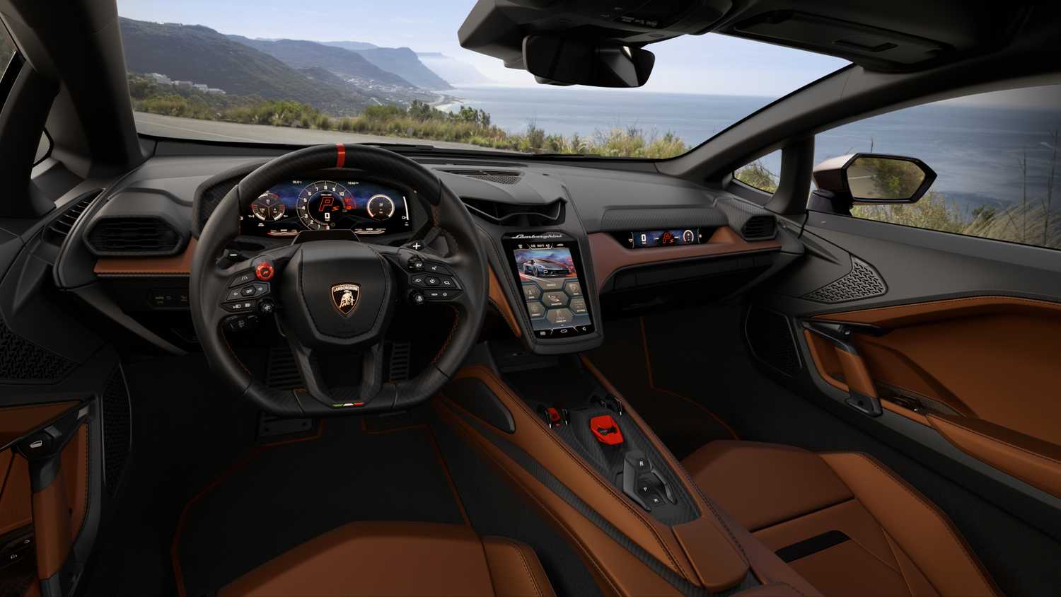 داخليا تعني روح التصميم الداخلي 'اشعر وكأنك طيار' من لامبورغيني أنك لا تزال تحصل على غطاء مفتوح لزر التشغيل / الإيقاف ، ولكن نظرا لأن هذا هو عام 2024 ، فهذا يعني أيضا أنك تحصل على عجلة قيادة معقدة