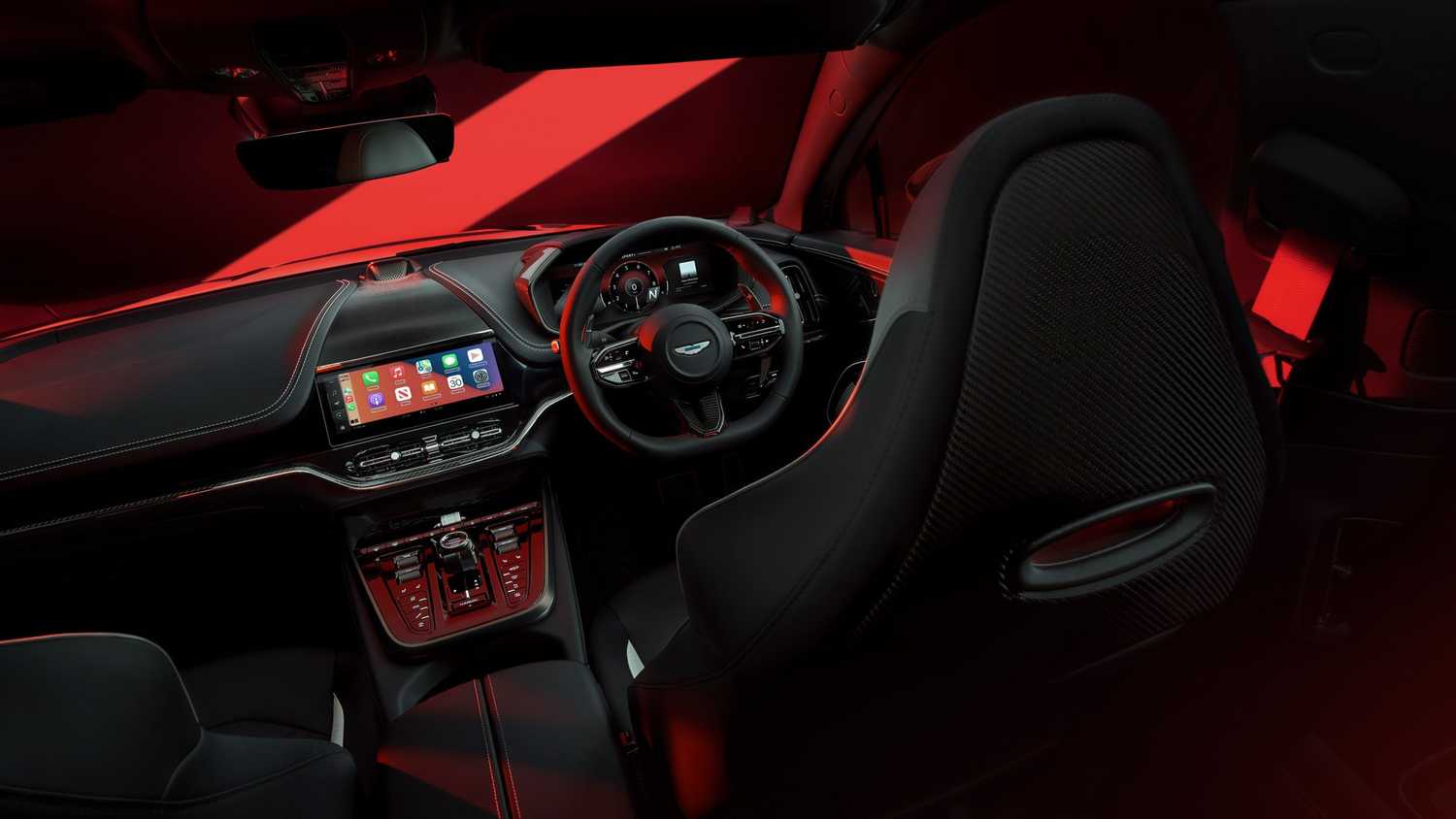 من الداخل ، تحصل DBX S على نمط متعرج جديد للمقاعد المطابقة على بطانة السقف إذا اخترت الكربون. يحصل طراز S على تنجيد Alcantara على كل سطح تقريبا ، مع وجود جلد على بقع التآكل. إذا كنت لا تريد الألياف الدقيقة الاصطناعية ، فيمكنك الحصول على جلد شبه أنيلين على كل شيء.