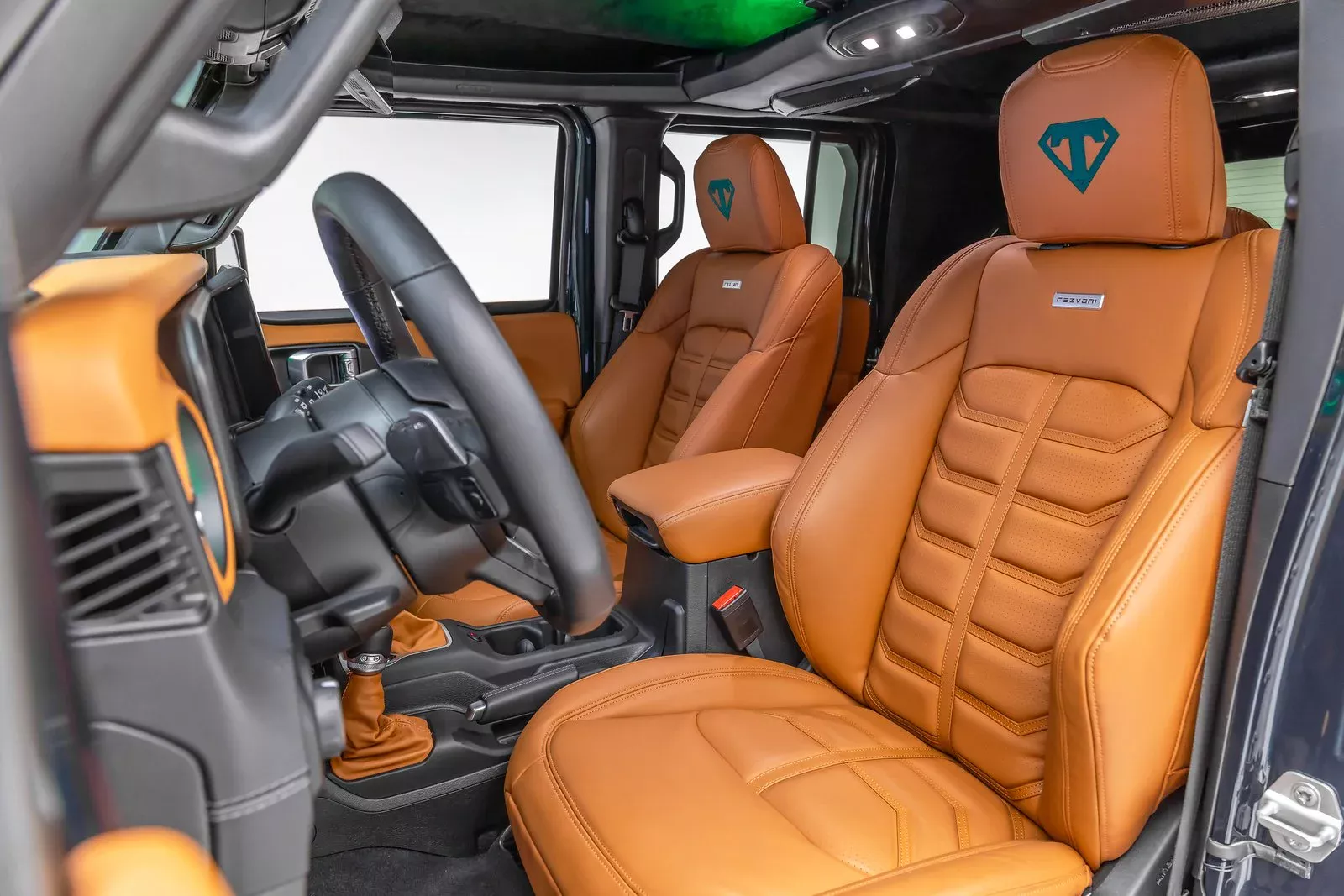 ولكن، في حين أنه لا يوجد شيء في التصميم الخارجي للدبابة يشير إلى أسس جيب ، إلا أنه لا يمكن قول الشيء نفسه عن الداخل. تم الاحتفاظ بلوحة القيادة وألواح الأبواب وبطانة السقف القياسية في رانجلر، على الرغم من إعادة تسمية عجلة القيادة، ويمكن تركيب مقاعد جديدة ومزينة بالجلد الفاخر. أضاف ريزفاني أيضًا المزيد من فتحات الهواء ذات المظهر المتميز، والتي يبدو أنها مأخوذة من سيارة مرسيدس.
