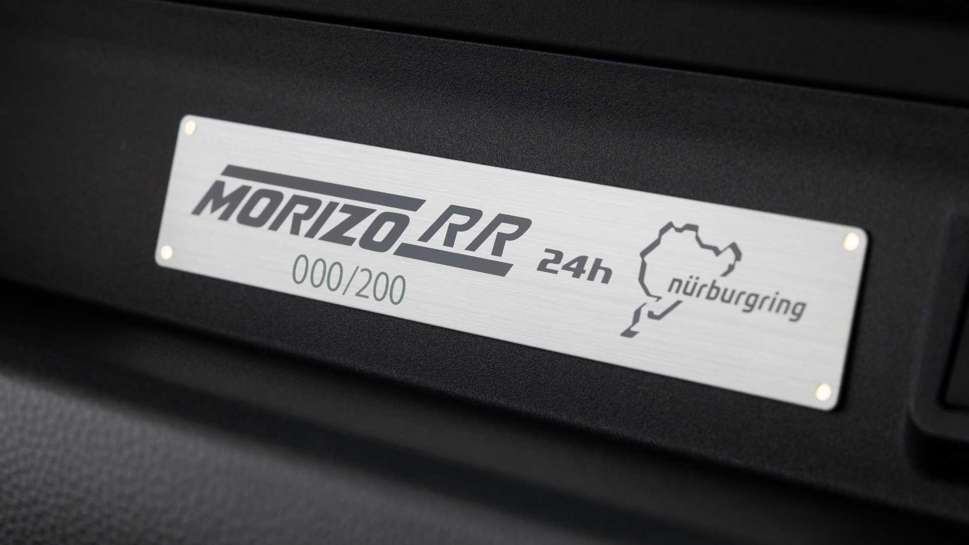 يتميز الباب الخلفي بشعارات Morizo RR، ويحتوي الزجاج الأمامي على توقيع Morizo. كماتحصل كل سيارة أيضًا على لوحة متسلسلة حصرية تحمل شعار Morizo RR، ورسومات رياضية مخصصة للأجهزة الرقمية عندما تكون في وضع Morizo.