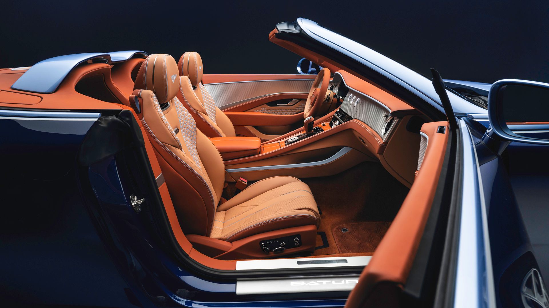 تتعلق هاتان الميزتان بالسقف الناعم والديكور الداخلي. كما هو ظاهر بوضوح، تتميز سيارة باتور هذه بنظام طلاء ثنائي اللون مع قسم علوي أزرق شاحب وجوانب زرقاء داكنة (بالإضافة إلى شريط فضي على طول حافة اللون الأزرق الفاتح). اللون الأزرق الفاتح يصنع قسمًا علويًا ملفتًا ومستمرًا، والذي قد يفسد إذا كان الجزء العلوي الناعم من باتور بلون مختلف. كان الحل الواضح هو مطابقة الألوان، وهو ما فعلته بنتلي. من الواضح أنها أول سيارة ذات سقف ناعم ذات لون مخصص تصنعها بنتلي.