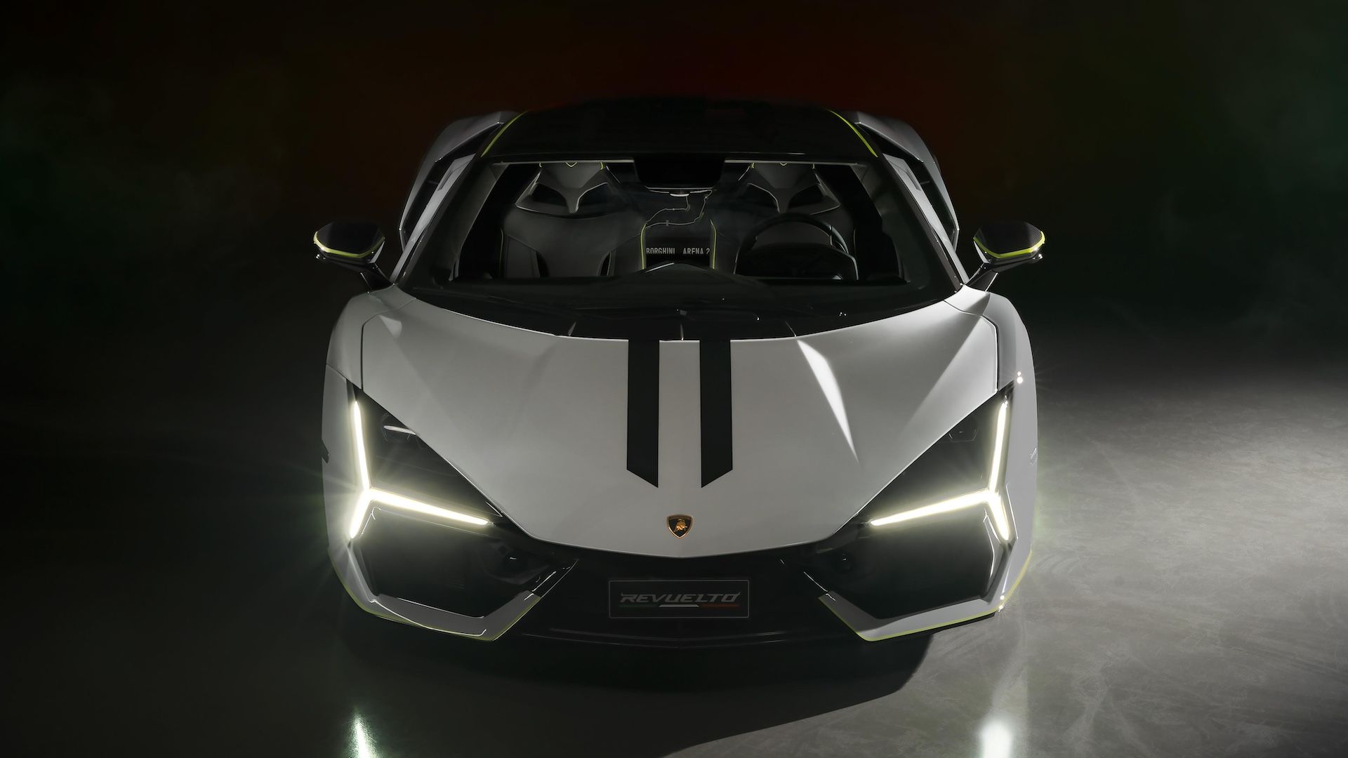 في الداخل، تأتي Revuelto المخصصة بمقاعد رياضية Nero Ade (سوداء) مع خياطة وأنابيب Verde Scandal - وهو نفس اللون المستخدم لشعارات Lamborghini المطرزة على مساند الرأس. يوجد أيضًا تطريز حصري لحلبة إيمولا على لوحة الحاجز، بالإضافة إلى شعارات Ad Personam على ألواح الكربون على لوحة القيادة.